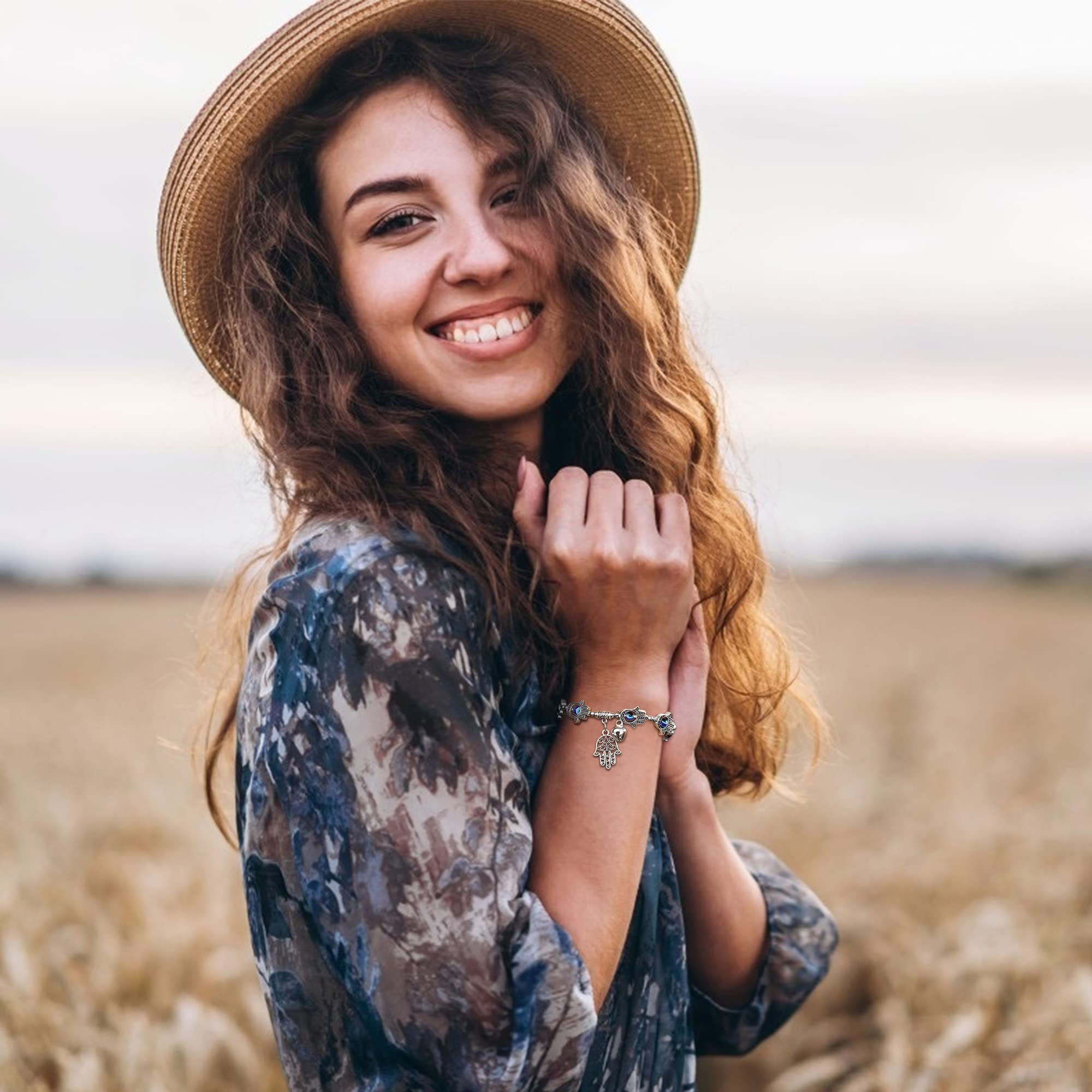 · Blue Eye Hamsa Hand Charm: The blue eye and hamsa hand charms are believed to bring good luck, protection, and blessings to the wearer.